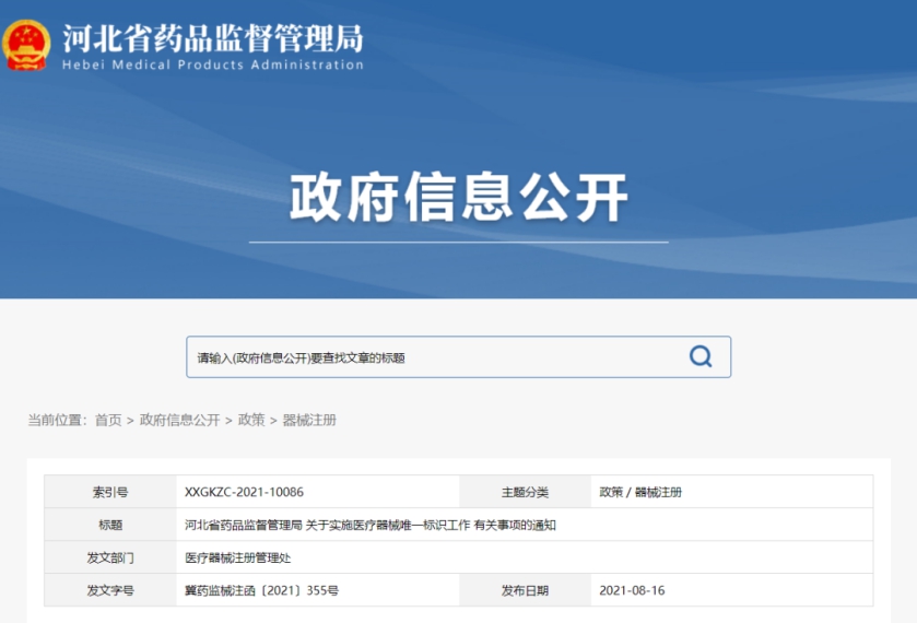 8月16日,河北省藥監(jiān)局印發(fā)《關于實施醫(yī)療器械唯一標識工作有關事項的通知》(以下簡稱“《通知》”),規(guī)定2021年11月1日起生產(chǎn)的醫(yī)療器械應當具有醫(yī)療器械唯一標識,以及申請首次注冊、延續(xù)注冊或者注冊變更時,注冊申請人/注冊人應當提交產(chǎn)品標識。